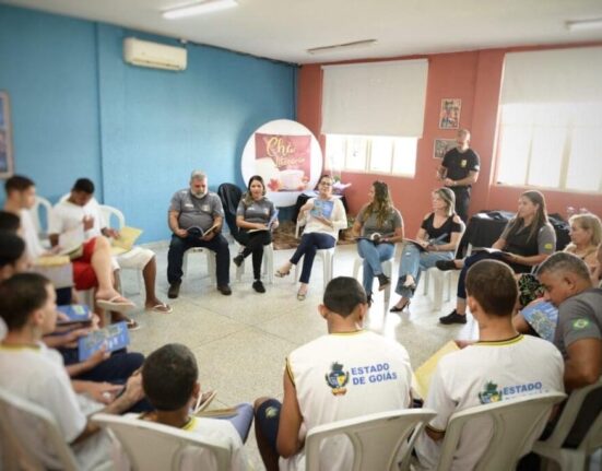 Jovens internos do Centro de Atendimento Socioeducativo (Case) de Goiânia participaram de uma roda de conversa com a escritora Denise
